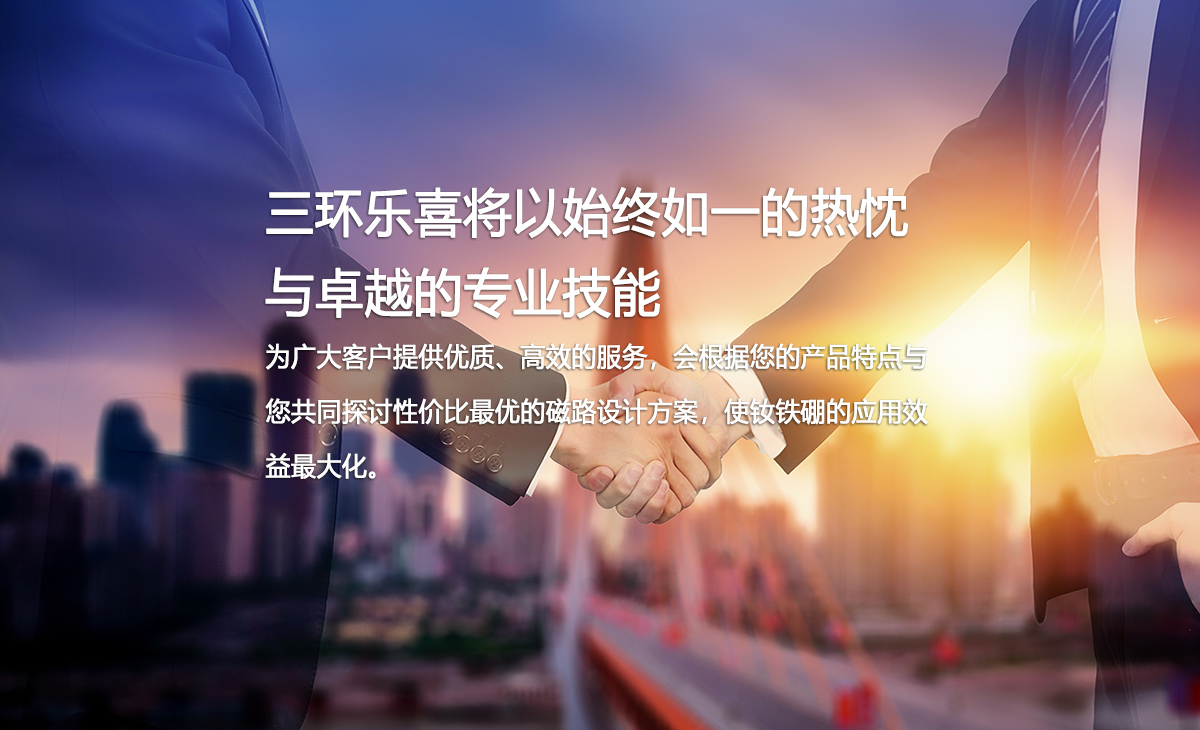 三環(huán)樂喜新材料有限公司,成立于1990年,控股股東中科三環(huán)(股票代碼:000970)為中國稀土永磁材料產(chǎn)業(yè)的代表企業(yè)、全球特大的釹鐵硼永磁體制造商之一。自成立以來,公司一直致力于研發(fā)、生產(chǎn)、銷售中、高品質(zhì)燒結(jié)釹鐵硼,年生產(chǎn)能力超過6000噸,是中科三環(huán)的重要生產(chǎn)基地。